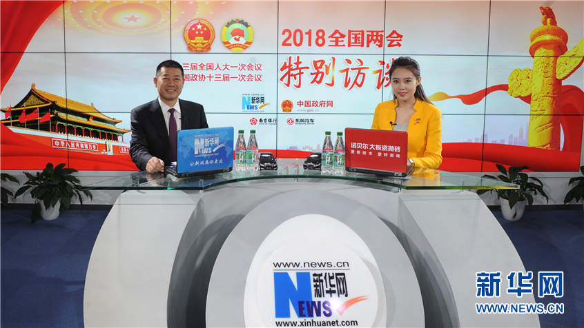全國人大代表、飛鶴乳業(yè)董事長冷友斌(左)做客新華網(wǎng)2018全國兩會特別訪談。