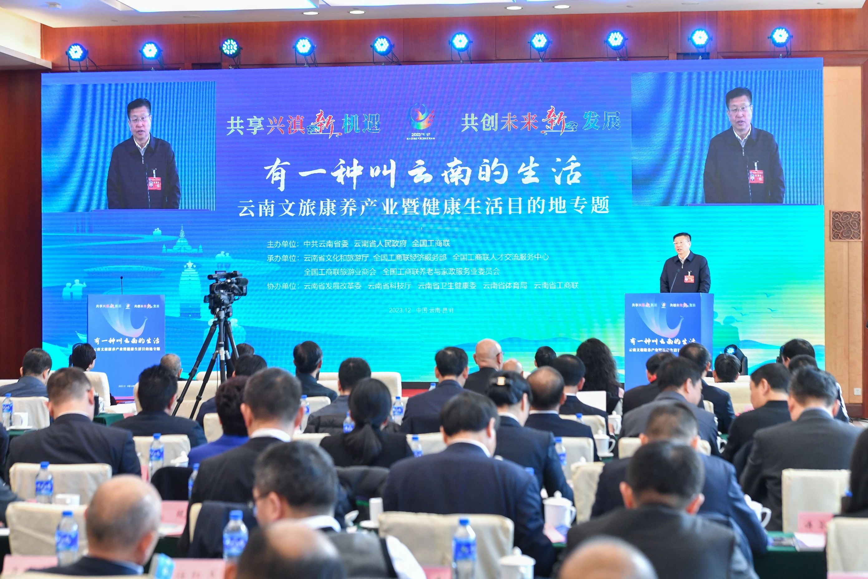 12月27日下午,民企助推云南高質量發展大會“云南文旅康養產業暨健康生活目的地”專題活動在昆明舉行。活動以“有一種叫云南的生活”為主題,推介云南文旅資源,共商合作發展機遇。全國工商聯副主席安立佳、云南省副省長楊洋出席活動并致辭,云南省文旅廳廳長趙國良主持。