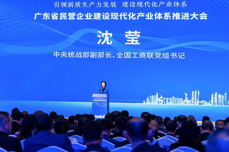 2月24日,以“引領(lǐng)新質(zhì)生產(chǎn)力發(fā)展 建設(shè)現(xiàn)代化產(chǎn)業(yè)體系”為主題的廣東省民營企業(yè)建設(shè)現(xiàn)代化產(chǎn)業(yè)體系推進(jìn)大會在東莞召開,中央統(tǒng)戰(zhàn)部副部長、全國工商聯(lián)黨組書記沈瑩出席會議并講話。
