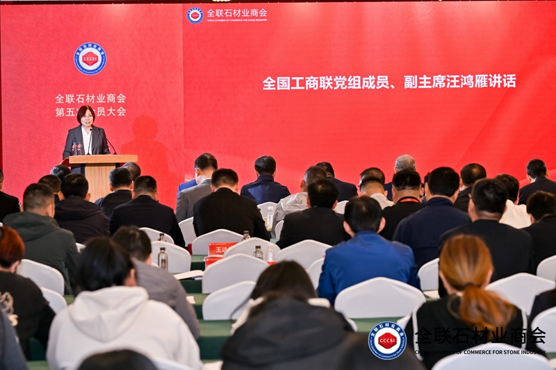 汪鴻雁在全聯石材業商會第五次會員大會上講話