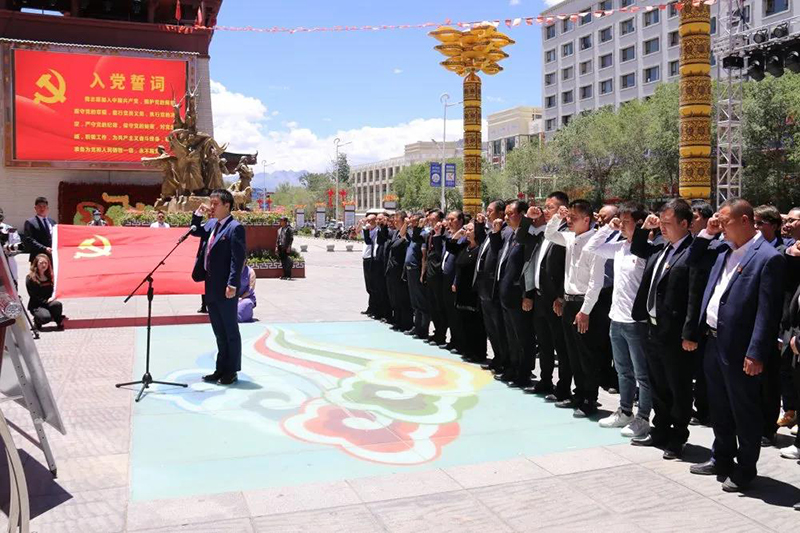 在活動當天,區工商聯(總商會)在藏游壇城廣場舉辦了老黨員為新黨員佩戴黨徽、新黨員入黨宣誓暨老黨員重溫入黨誓詞、參觀共產黨歷史展覽活動。