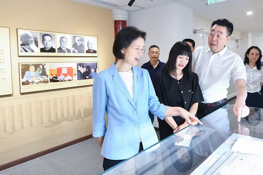 7月12日上午,中央統戰部副部長、全國工商聯黨組書記沈瑩參觀中華全國工商業聯合會會史展。張雷/攝