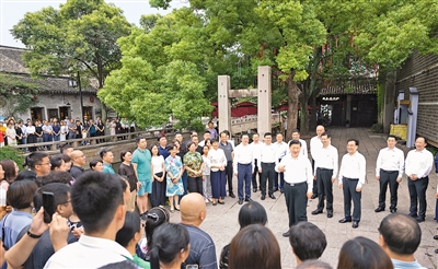 7月5日至7日,中共中央總書記、國家主席、中央軍委主席習(xí)近平在江蘇考察。這是6日上午,習(xí)近平在蘇州平江歷史文化街區(qū),同當(dāng)?shù)鼐用窈陀慰陀H切交流。