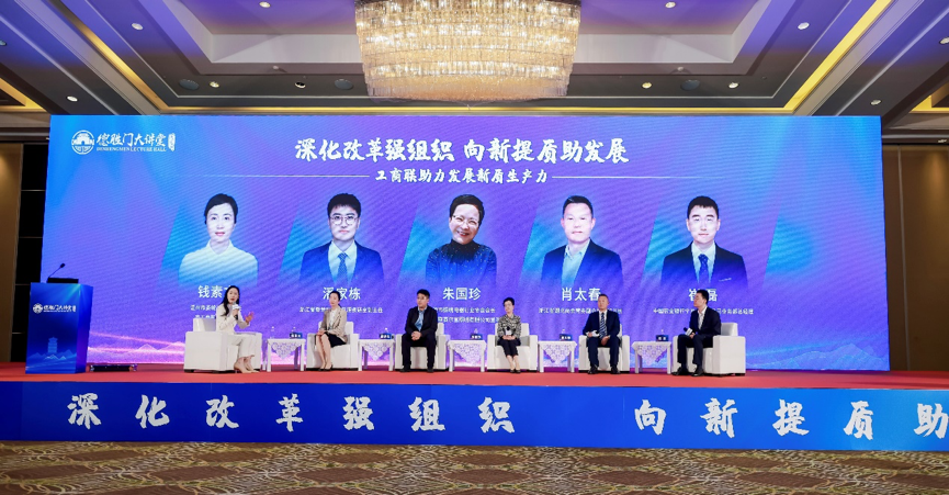 溫州市委統戰部副部長、市工商聯黨組書記錢素文,寧波市照明電器行業協會會長、中照聯賽爾富照明有限公司董事長朱國珍,浙江省湖北商會常務副會長、秘書長肖太春,浙江省委黨校工商管理教研室副主任潘家棟,中國農業銀行寧波分行公司業務部總經理崔磊圍繞“深化改革強組織、向新提質助發展”開展對話。