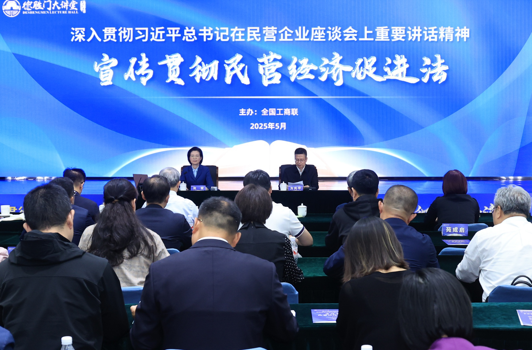 512日下午,全國工商聯在京舉辦深入貫徹習近平總書記在民營企業座談會上重要講話精神、宣傳貫徹民營經濟促進法德勝門大講堂專題活動。全國人大常委會法工委副主任王瑞賀宣講解讀民營經濟促進法,中央統戰部副部長、全國工商聯黨組書記沈瑩作總結講話。全國工商聯領導班子成員王受文、安立佳、汪鴻雁出席活動,方光華主持活動。