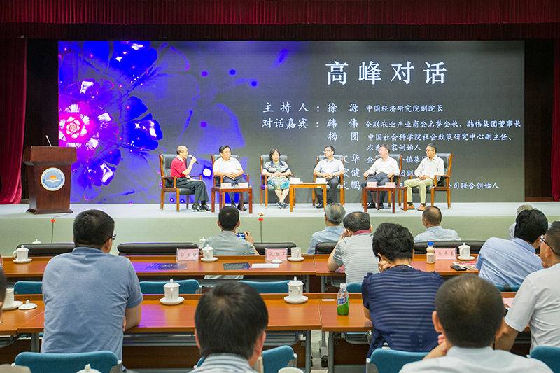 高峰對話環(huán)節(jié)在中國經(jīng)濟研究院副院長徐源的主持下,中國社科院社會政策研究中心副主任楊團、韓偉集團董事長韓偉、金恪特色小鎮(zhèn)集團總裁孫文華、大北農(nóng)集團副總裁莫宏健與佳格天地聯(lián)合創(chuàng)始人張文鵬,從產(chǎn)業(yè)融合、特色小鎮(zhèn)、品牌強農(nóng)、科技興農(nóng)等不同角度分享了經(jīng)驗心得。
