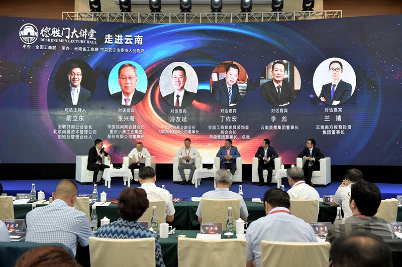 隨后,在全聯并購公會會長、北京尚融資本創始及管理合伙人尉立東的主持下,進行了德勝門大講堂走進云南圓桌對話。中國民間商會副會長、重慶小康工業集團董事長張興海,中國民間商會副會長、黑龍江飛鶴乳業集團董事長冷友斌,全國工商聯家具裝飾業商會會長、月星集團董事長丁佐宏,云南昊邦集團董事長李彪,云南南方教育投資集團董事長蘭靖結合自身企業發展實際,共同圍繞民營企業如何實現高質量發展進行了廣泛而深入的探討,展現了企業家們“不忘初心、牢記使命”的情懷。