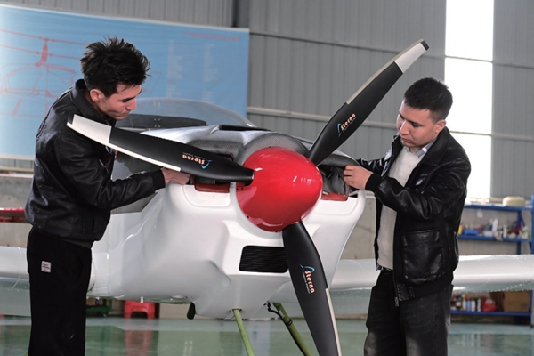 2025年2月26日,在江西省宜春市萬載縣永益飛機(jī)制造有限公司車間,工作人員對(duì)輕型運(yùn)動(dòng)類飛機(jī)進(jìn)行組裝調(diào)試。近年來,江西省宜春市萬載縣利用空域條件優(yōu)勢(shì),探索融合飛行新模式,加快發(fā)展民營低空經(jīng)濟(jì)制造產(chǎn)業(yè)。
