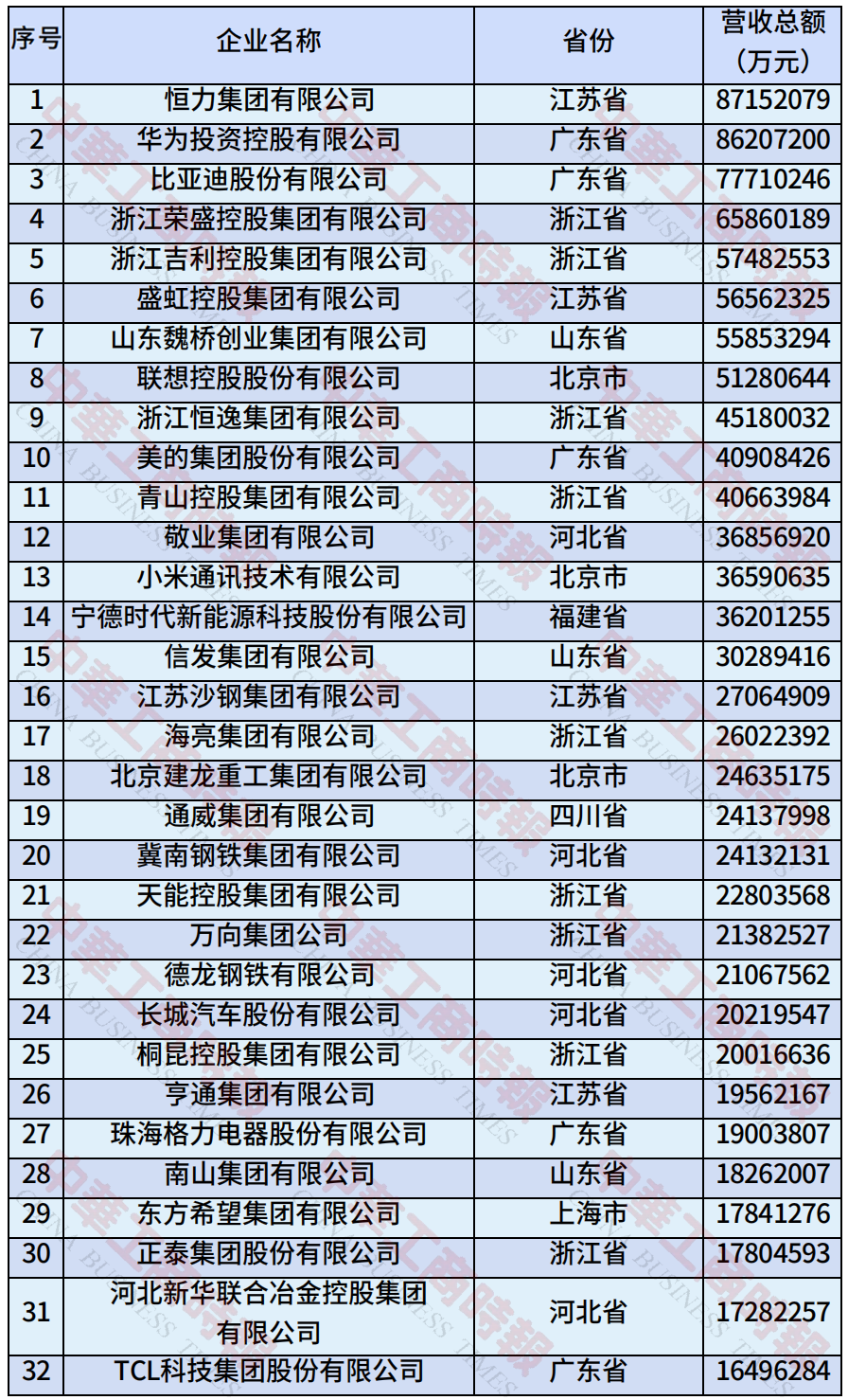 2025中國制造業(yè)民營企業(yè)500強(qiáng)榜單