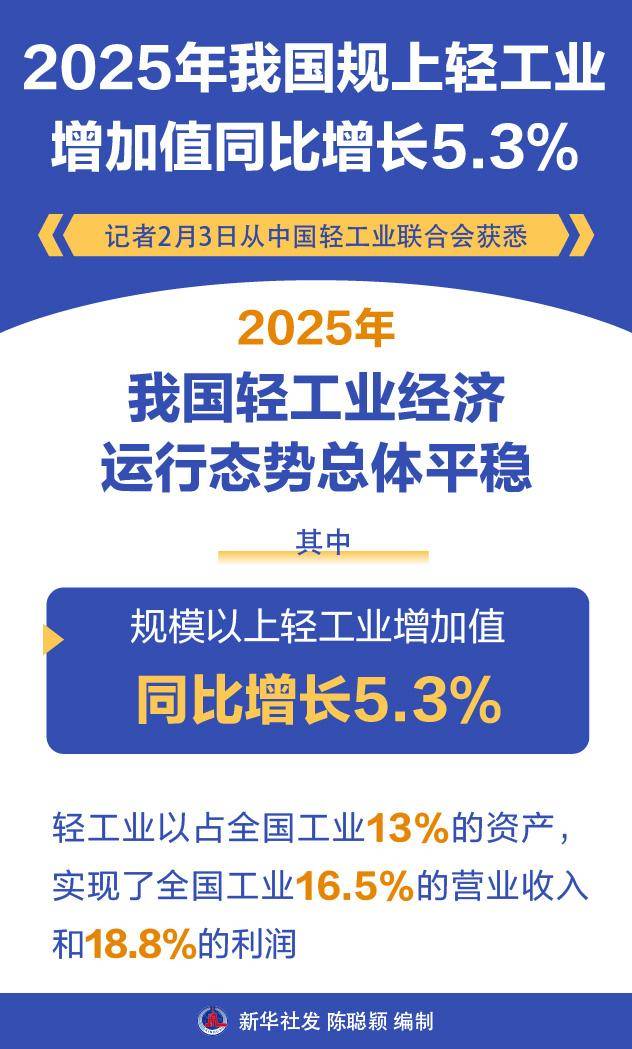 2025年我國規上輕工業增加值同比增長5.3%
