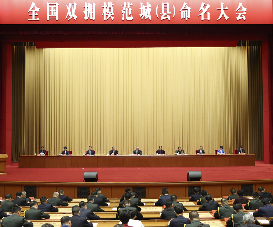 ??大會宣讀了關(guān)于命名全國雙擁模范城(縣)的決定,并為全國雙擁模范城(縣)代表頒獎。有關(guān)軍地代表作了發(fā)言。