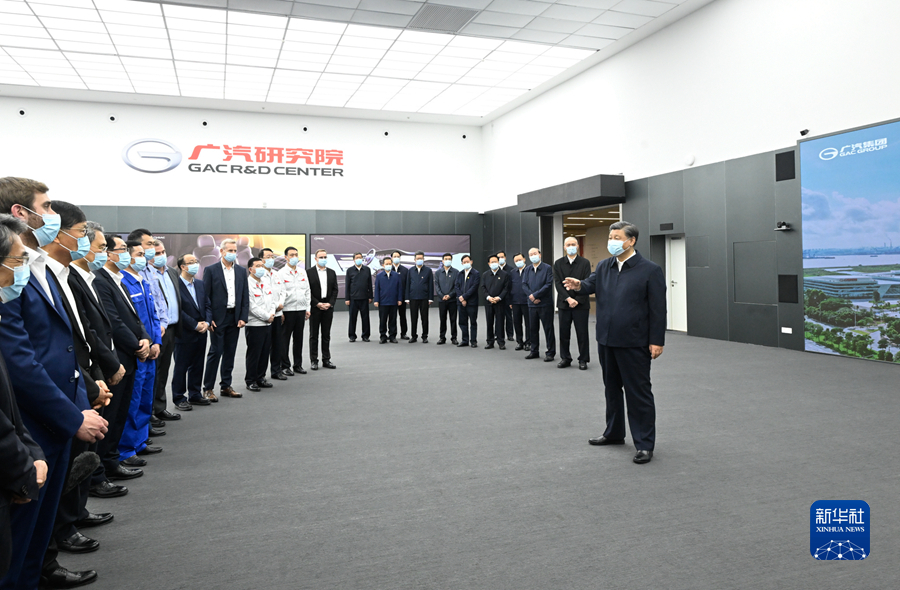 習近平隨后來到廣汽埃安新能源汽車股份有限公司考察。他走進企業展廳、總裝車間、電池生產車間等,了解企業突破關鍵核心技術和推動制造業高端化、智能化、綠色化等進展情況。在廣汽研究院,習近平仔細察看智能網聯實驗室、模型設計實驗室等,并同科技人員、企業家、職工、外資企業代表等交流。習近平指出,中國改革開放政策將長久不變,永遠不會自己關上開放的大門。一切愿意與我們合作共贏的國家,我們都愿意與他們相向而行,推動世界經濟共同繁榮發展。習近平強調,中國是個大國,要重視實體經濟,走自力更生之路。關鍵核心技術要立足自主研發,也歡迎國際合作。要加強教育和人才培養,夯實科技自立自強根基。