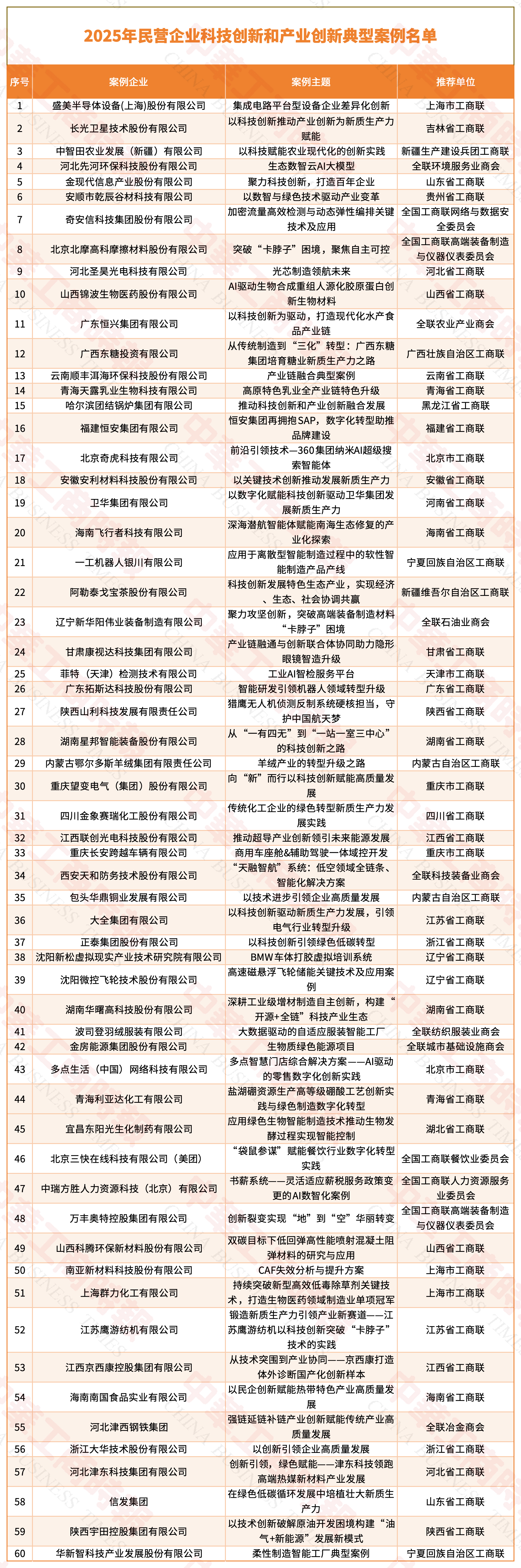 2025年民營企業科技創新和產業創新典型案例名單