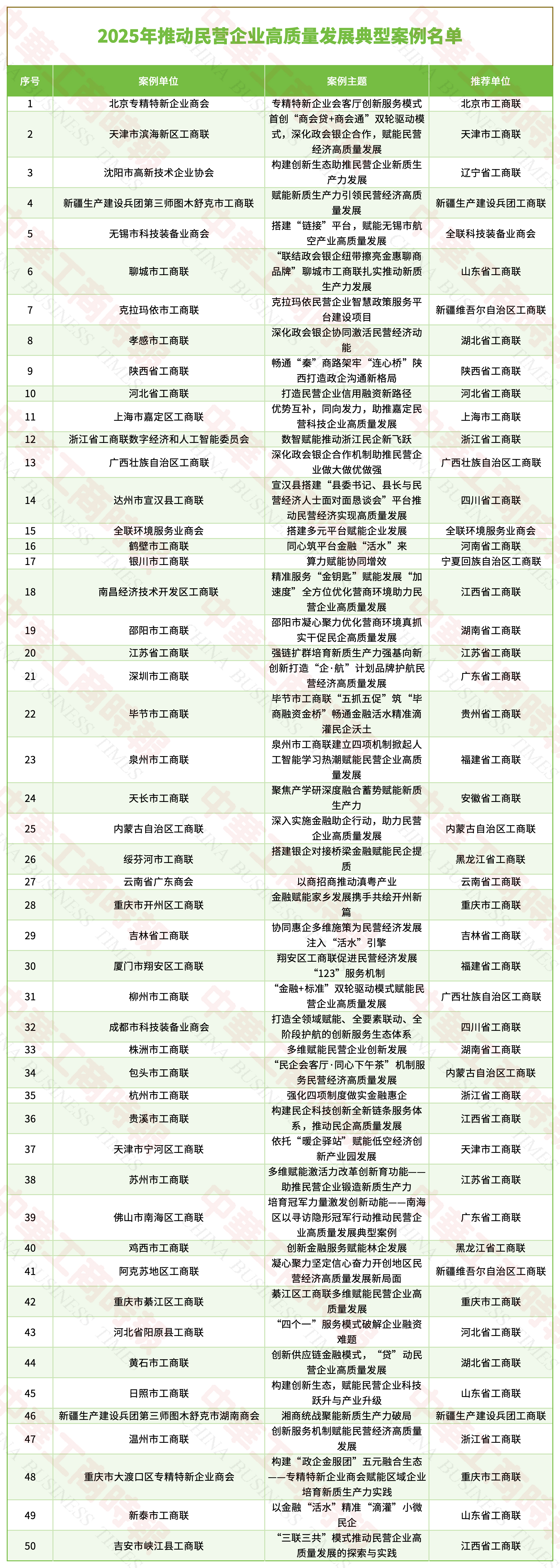 2025年推動民營企業高質量發展典型案例名單