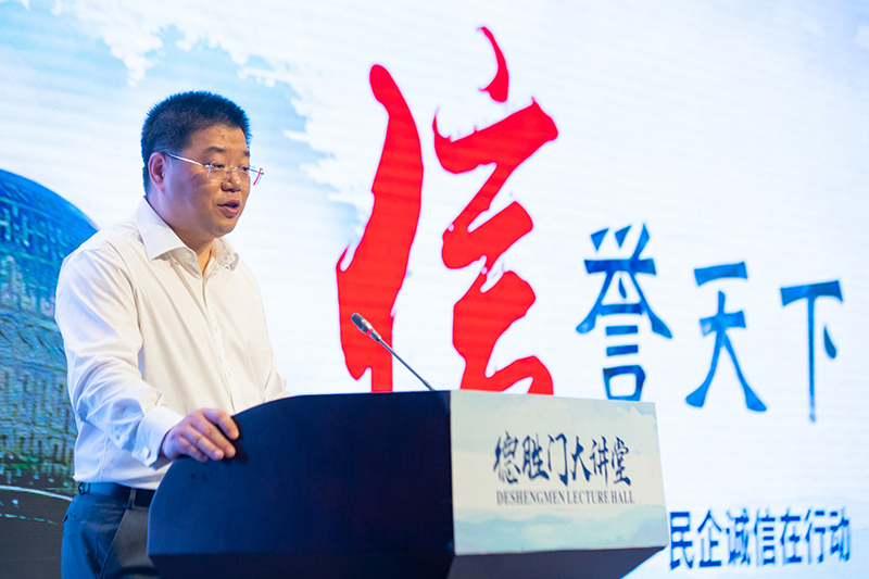 大家可以看到,這次大講堂的背景非常有特點,天空、大海,加一個鼎,一言九鼎,是古老的誠信故事;誠信,才能走遍四海、譽滿天下。誠信,是中華民族、特別是中華商業(yè)文明的好傳統(tǒng)。進入新時代,習(xí)近平總書記反復(fù)強調(diào)民營企業(yè)家要把守法誠信作為安身立命之本。民企講誠信,對于民營企業(yè)健康發(fā)展、民營企業(yè)家健康成長意義重大,這也是新時代民營企業(yè)家的責任。